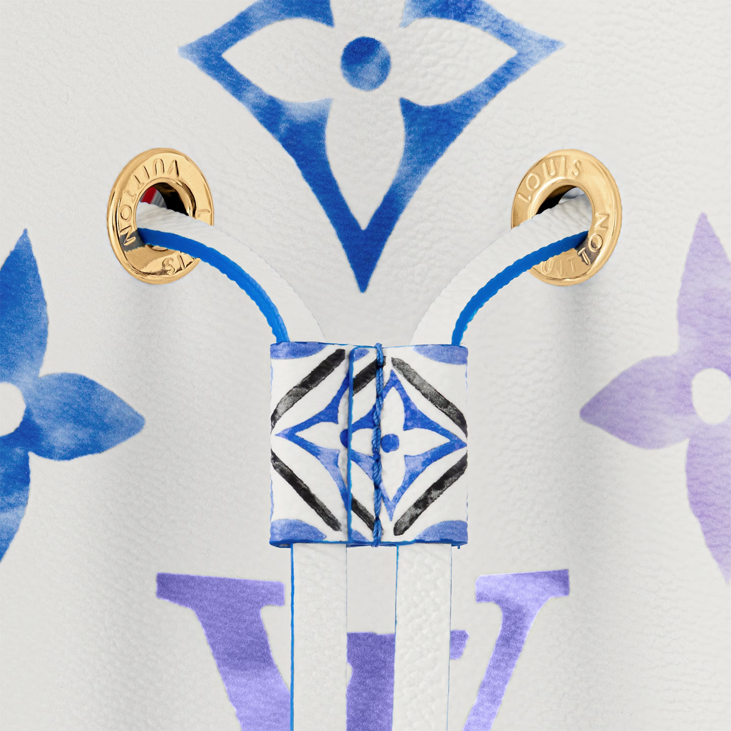 Cream-color canvas with a Giant Monogram print in pastel brings a resort vibe to this NeoNoé bucket bag. The Louis Vuitton’s and Monogram Flowers seem to be painted on the canvas in watercolor and explore soft nuances of tone. The NeoNoé closes with a drawstring. Inside there’s a central pocket with a press stud.7.9 x 7.9 x 5.1 inches(length x Height x Width)BlueMonogram coated canvasTextile liningGold-color hardwareDrawstring closure2 compartmentsCentral pocket with press-studStrap:Removable, adjustableStrap drop: 13.0 inchesStrap drop max: 22.0 inchesHandle:Single, removableThis reference is either Made in France, Spain, Italy or in the US.