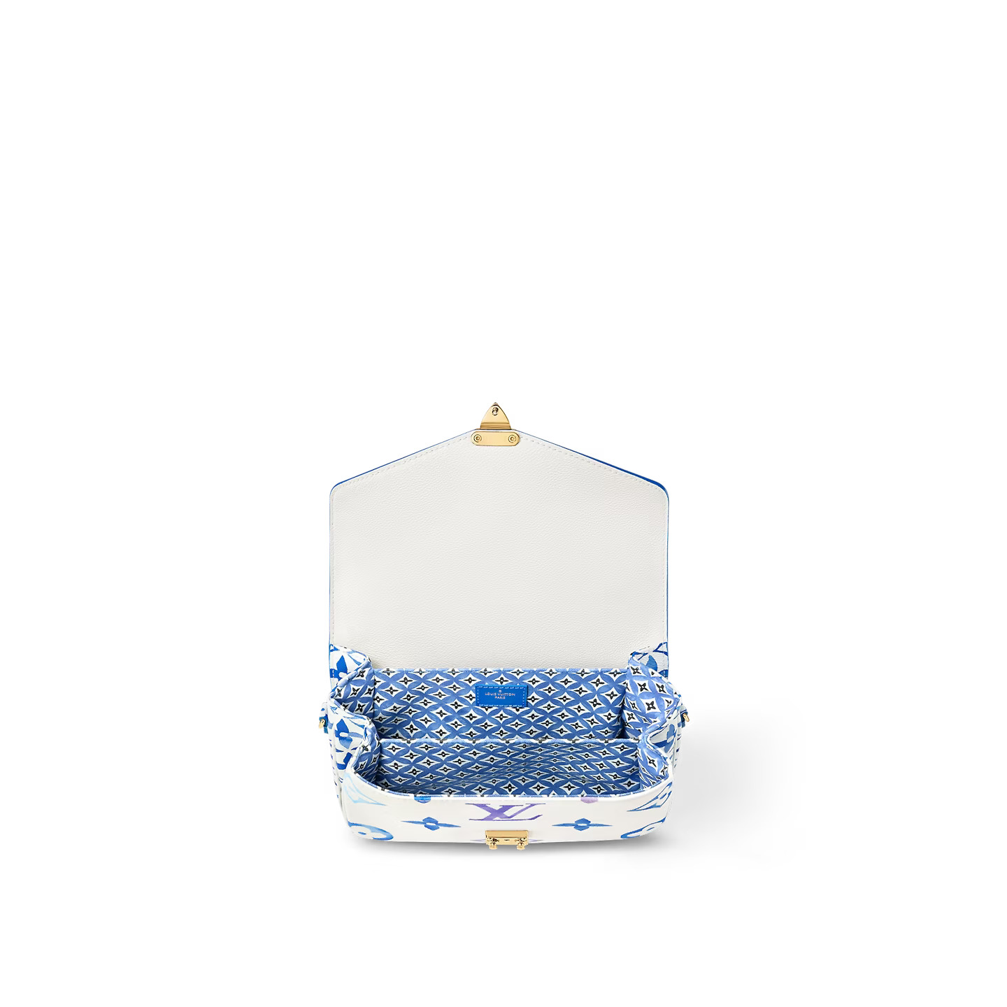 The Pochette Metis handbag is made from cream-color canvas with pastel LV’s and Monogram Flowers printed with a delicate watercolor effect. The top handle and removable strap feature a denser pattern of the Monogram Flowers, reminiscent of the painted ceramic tilework found in Lisbon.9.8 x 7.5 x 2.8 inches(length x Height x Width)BlueMonogram coated canvasTextile liningGold-color hardwareS-lock closureOutside zipped pocket3 inside compartmentsStrap:Removable, adjustableStrap drop: 18.9 inchesStrap drop max: 21.7 inchesHandle:SingleThis reference is either Made in France, Spain, Italy or in the US.