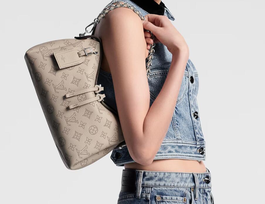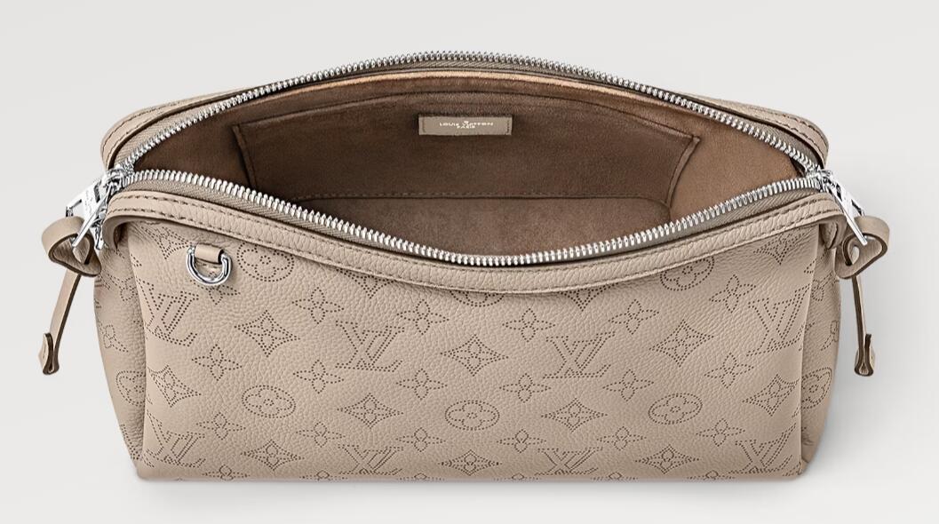 The Mahina Hand It All PM bag is made with the Maison’s exclusive perforated calfskin. The supple signature leather displays a beautiful drape, enhanced by the bag’s curvy silhouette. Fitted with a leather strap and a braided chain-and-leather handle ??both detachable ??this is a stylish and versatile companion for women on the go.
